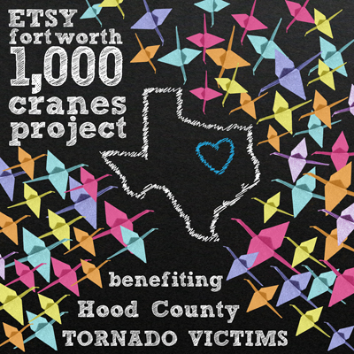 This Thursday, June 20th, is the annual Etsy Craft Party. Local teams, including Etsy Fort Worth, are hosting the parties world wide.This years theme is "Crafting for Community". And in that spirit the Etsy Fort Worth team will be hosting a crafty benefit for the tornado victims just to our south in Hood County.viaAt the party guests will have the opportunity to donate $1 to fold a paper crane. … [Read more...]