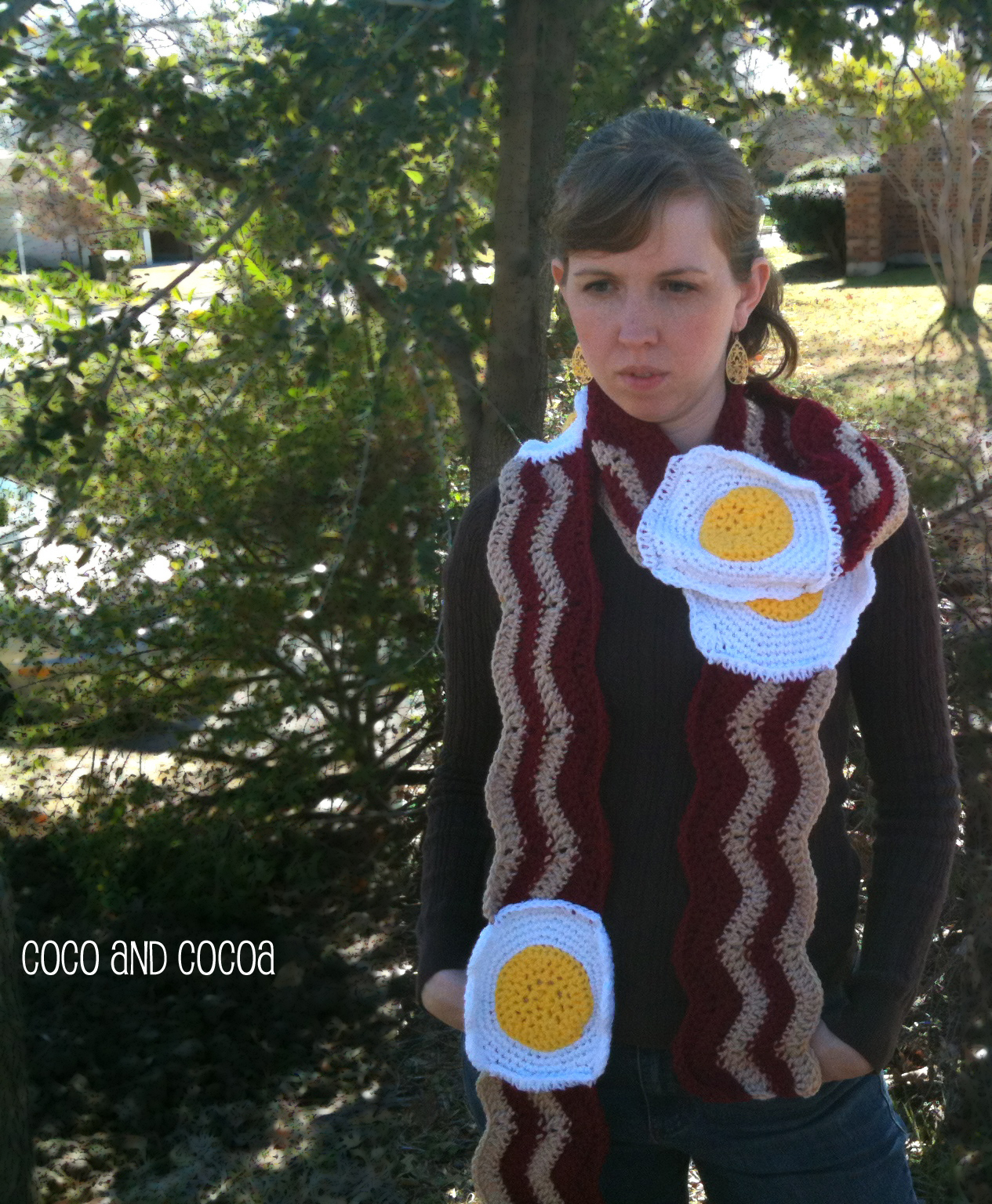 I love custom orders. At the Etsy817 Handmade Holidays show I did in December a customer came up and asked me if I would make a bacon and egg scarf for her. Now, this is something I never would of thought up on my own, which is why I was so excited to make it!