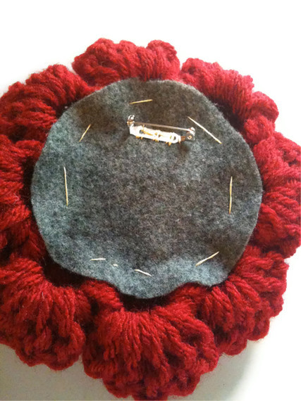 Here is the back (of the red brooch), with the felt backing and pin stitched on