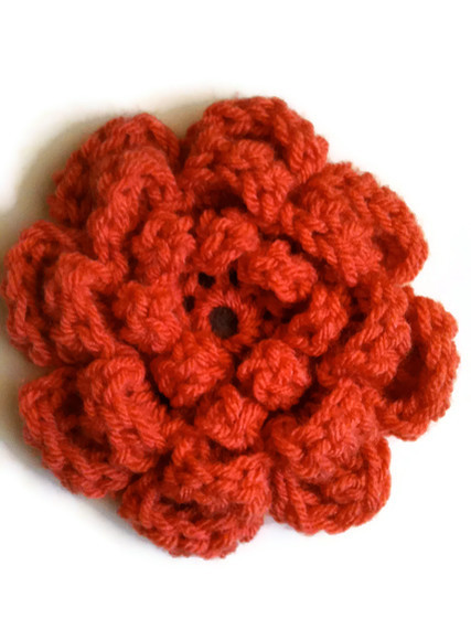 Here are three brooches (in coral, red, and turquoise)
