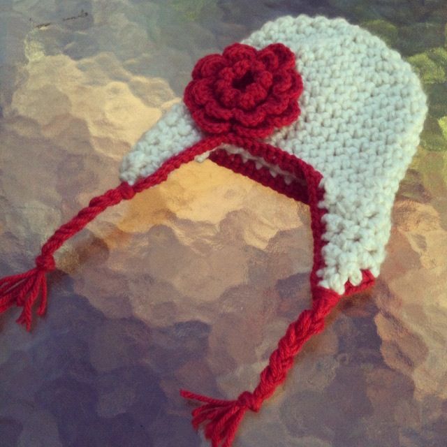 coral flower earflap hat