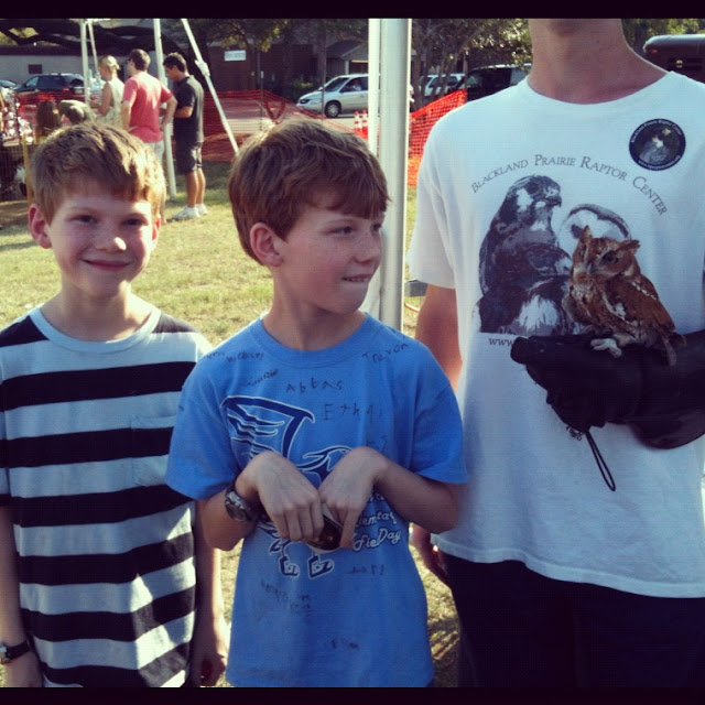 The Blackland Prairie Raptor Center was there with some hawks and this tiny owl. The guy told us this species reaches its full grown size after only 6 weeks.