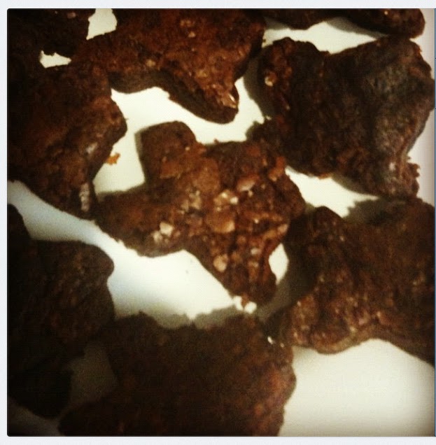 I made a regular pan of brownies and then used a tiny Texas cookie cutter to cut them out. (Thanks to Little Blu for this picture so you can see how small they are.)