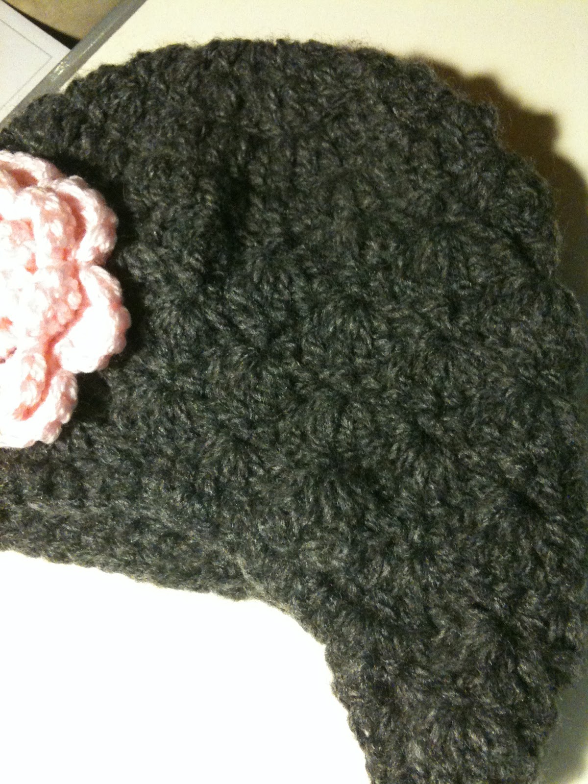 This week I made another version of that hat. But the body of the hat was gray and the flower was a light pink.
