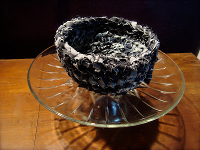 {Recycled} Blue Jean Bowl March 20, 2010 by Julie Leave a Comment This cool denim bowl is made from strips of denim crocheted together. And it’s available in the shop!