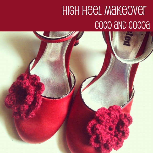 Since part of the ribbon from the bows is sewed in the shoe there was no way to get rid of all of it. But I planned to cover it up anyway. I’ve been making lots of crochet flowers now that spring is coming and I thought what would better suit me than flowers on my shoes? I simply crocheted the flowers and hot glued them to my shoes. Voila!