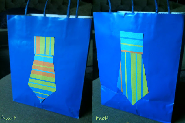 For the baby shower that I went to last weekend I took a plain blue bag and added a tie to the front and back to go with the little man theme.
