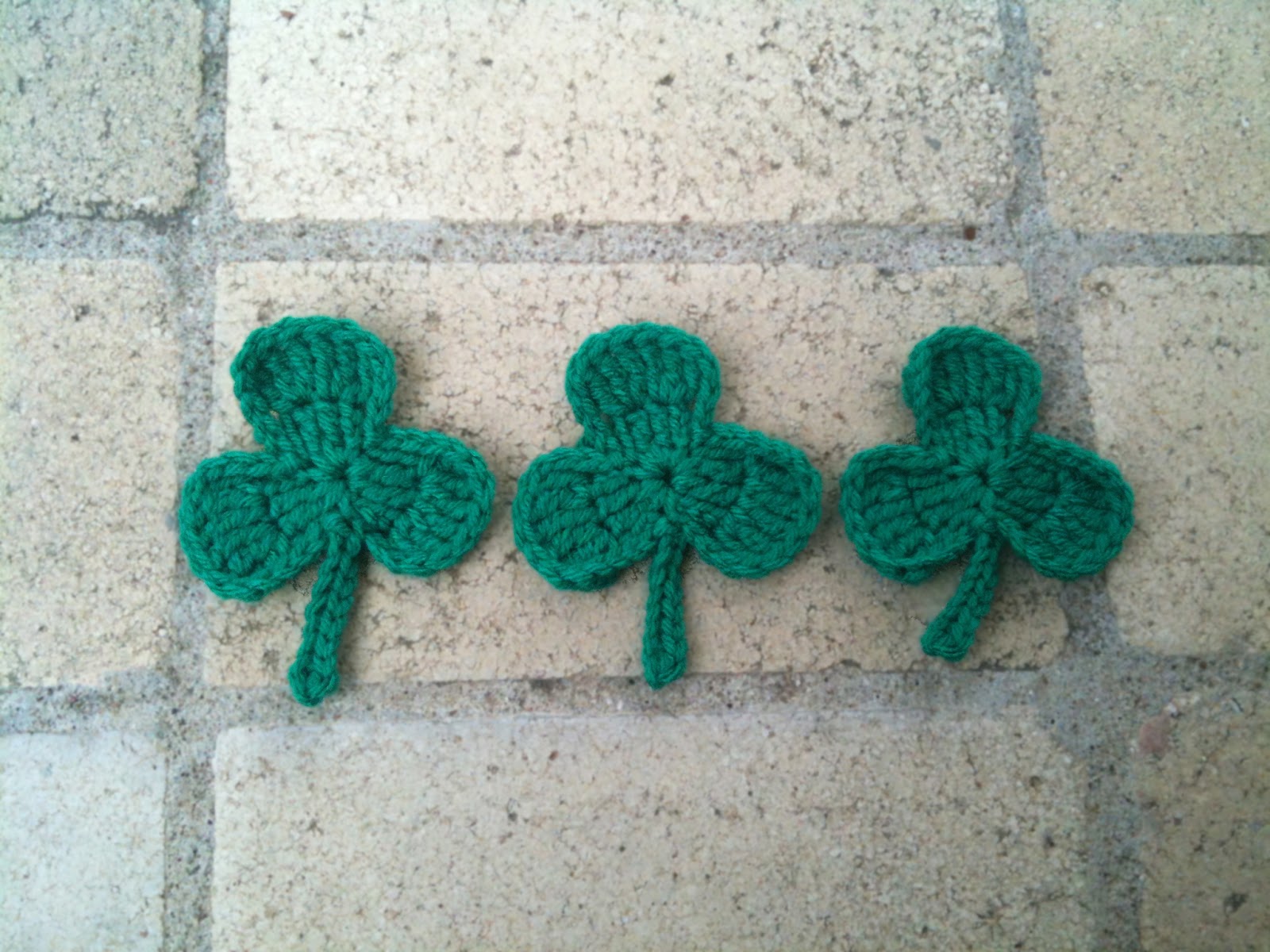 The crochet heart pins were so much fun to make for Valentine’s Day, I decided to make some shamrock pins for St. Patrick’s Day.