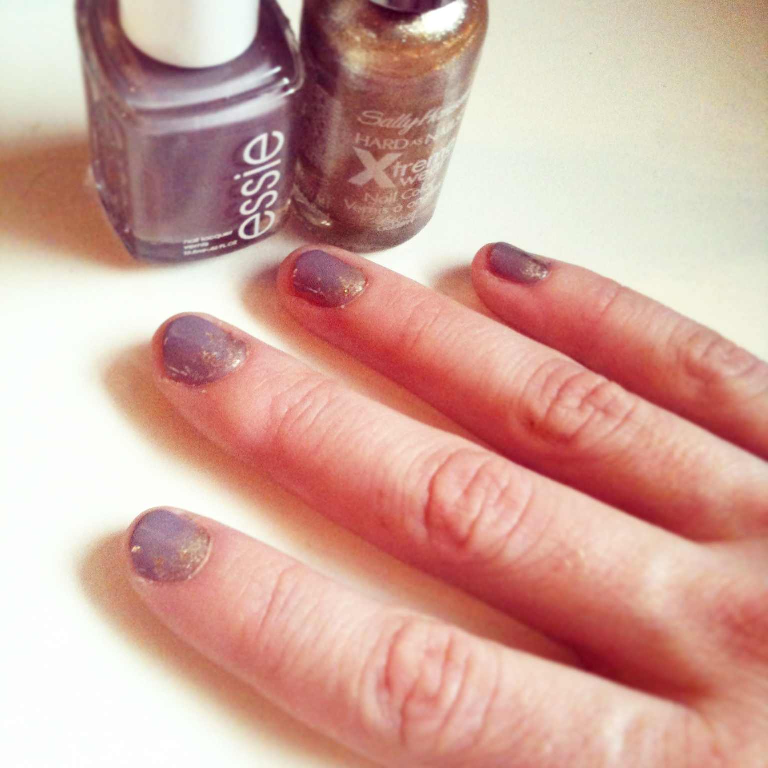 On Saturday I painted my nails for the first time in ages. I used two coats of Essie in chinchilly. Then I added some gold glitter near the nail base. It’s subtle, but pretty. And I really like it.